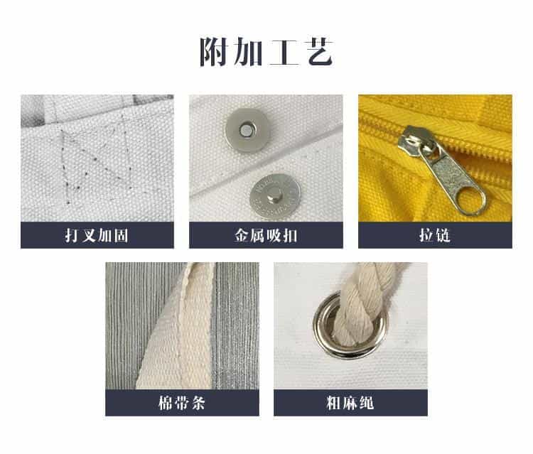 4.帆布环保袋的面料比较多,纹路也比较多,大部分都很细腻平整印刷成像效果很好。